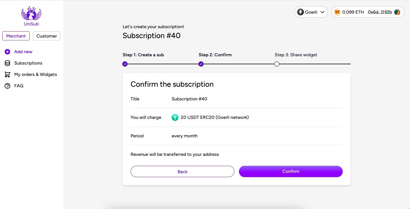 - use dashboard with on-chain analytics, where merchants can manage their subscribers